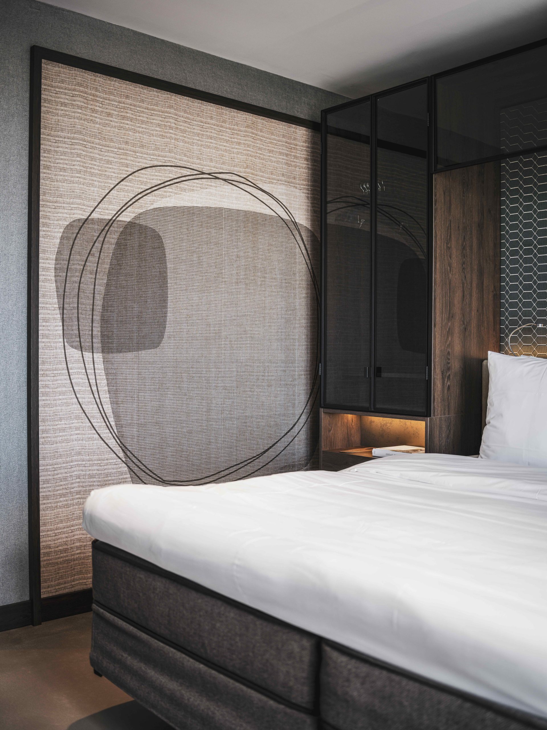The wallcoverings by Glamora, used for the lobby, the restaurant and the rooms, harmonise perfectly with the surrounding minimalist interiors, accompanying guests into an exclusive yet domestic dimension.