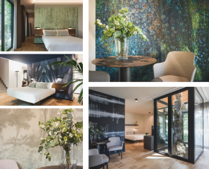 Placed in rooms with privileged views, these themes enrich the environments with a tactile and visual dimension, creating unique atmospheres that invite relaxation and contemplation. Each suite presents a theme related to the surrounding habitat, explored through natural motifs or abstract patterns that reflect the local flora and fauna.
