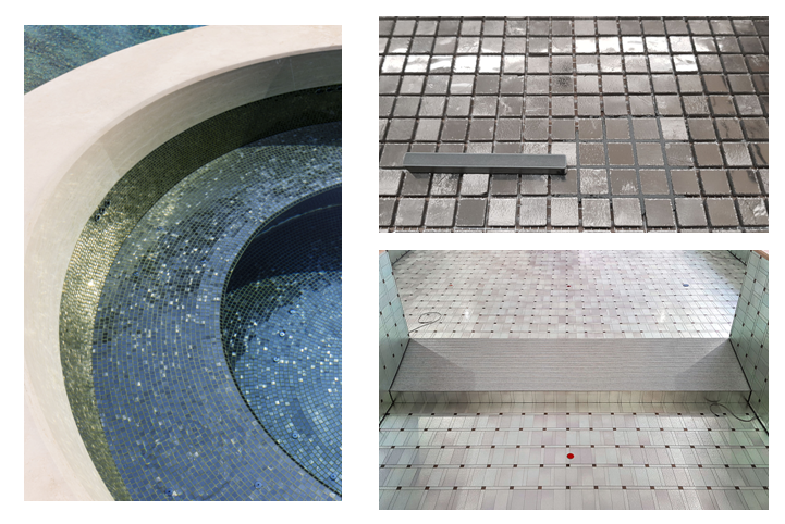 Litokol a contribué à la pose de toutes les surfaces en mosaïque avec deux de ses produits spécifiques aux piscines : Starlike EVO et Litoelastic EVO.