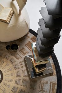 Ptolomeo’s project starts from a reflection on form and the container/content relationship. The basic idea is as simple as it is ingenious: to transform a pile of books into a design object. In fact, the bookcase looks like a column container where the books, placed one on top of the other, make the metal shelves disappear: the bookcase hides its shape to privilege that of the books it contains. Thus, if in design the form normally plays a fundamental role, in Ptolomeo its structure has value only to the extent that it allows the books to show themselves and become themselves, as a whole, an accessory, which connotes the space by affirming the absolute value of culture. A revolutionary project whose innovative character did not go unnoticed by the jury of the Compasso d’Oro, which in fact used this motivation to award it: “An idea full of irony to free books from floors and tables, an evocative sculpture that vertically overturns the traditional bookcase.”