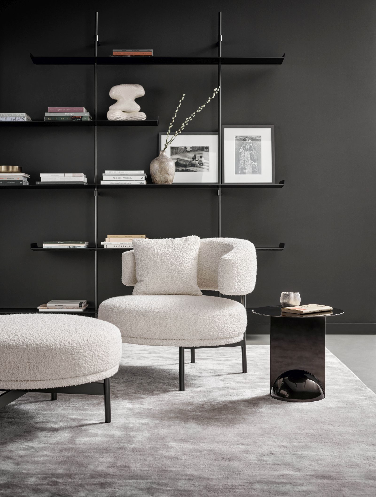 Ptolomeo’s project starts from a reflection on form and the container/content relationship. The basic idea is as simple as it is ingenious: to transform a pile of books into a design object. In fact, the bookcase looks like a column container where the books, placed one on top of the other, make the metal shelves disappear: the bookcase hides its shape to privilege that of the books it contains. Thus, if in design the form normally plays a fundamental role, in Ptolomeo its structure has value only to the extent that it allows the books to show themselves and become themselves, as a whole, an accessory, which connotes the space by affirming the absolute value of culture. A revolutionary project whose innovative character did not go unnoticed by the jury of the Compasso d’Oro, which in fact used this motivation to award it: “An idea full of irony to free books from floors and tables, an evocative sculpture that vertically overturns the traditional bookcase.”